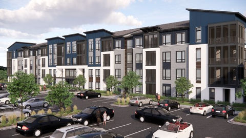 The complex will feature two four-story buildings and five separate townhome buildings. Amenities for residents will include an expansive clubhouse, fitness center, pet spa, a resort-style pool, grill stations, dog park, bicycle pavilion, and a nature path around the property.